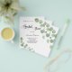 Por favor, note que este convite está no papel de folheto e é muito fino. Os envelopes não estão incluídos. Para convites mais espessos (mesmo design) visite nossa loja. Um fundo branco decorado com cinzas de eucalipto verde. Personalize e o nome da noiva a ser e os detalhes da festa. Fundo verde.