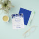 Por favor, note que este convite está no papel de folheto e é muito fino. Os envelopes não estão incluídos. Para convites mais espessos (mesmo design) visite nossa loja. Um fundo branco, decorado com flores azuis e brancas. Personalize e adicione seus nomes e detalhes. Fundo: fundo azul.
