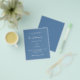 Por favor, note que este convite está no papel de folheto e é muito fino. Os envelopes não estão incluídos. Para convites mais espessos (mesmo design) visite nossa loja. Fundo azul empoeirado. Personalize e seus nomes e detalhes. Texto branco. Fundo: fundo azul empoeirado.