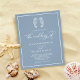 Este design de convite para casamento azul empoeirado é perfeito para casamentos costeiros e náuticos e de destinos de praia, com dois cavalos-marinhos bonitos se beijando no topo, uma caligrafia elegante e um quadro ao redor da borda. Este convite para casamento costeiro é de tamanho menor impresso em papel mais barato, sem um envelope. Se você quiser outra versão do orçamento em um papel ligeiramente melhor, com um envelope que custe um pouco mais, entre em contato comigo através do Zazzle Chat, ou use a opção Transferir para uma "folha de papel simples" 4,5"x 5,6".