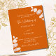 Por favor, note que este convite está no papel de folheto e é muito fino. Os envelopes não estão incluídos. Para convites mais espessos (mesmo design) visite nossa loja. Fundo laranja queimado, decorado com caules de eucalipto, galhos. Personalize e adicione seus nomes e detalhes. Fundo: cor de laranja empoeirada.