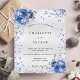 Por favor, note que este convite está no papel de folheto e é muito fino. Os envelopes não estão incluídos. Para convites mais espessos (mesmo design) visite nossa loja. Fundo metálico de aspecto fino prateado decorado com flores azuis e pequenos corações azuis. Personalize e adicione seus nomes e detalhes do casamento. Letras pretas coloridas.