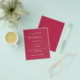 Por favor, note que este convite está no papel de folheto e é muito fino. Os envelopes não estão incluídos. Para convites mais espessos (mesmo design) visite nossa loja. Fundo cor magenta. Personalize e adicione seus nomes e detalhes. Texto branco. Fundo magenta.