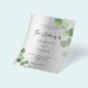Por favor, note que este convite está no papel de folheto e é muito fino. Os envelopes não estão incluídos. Para convites mais espessos (mesmo design) visite nossa loja. Um convite de casamento moderno, elegante e minimalista. Um fundo metálico de aparência fina prateada decorado com verde de eucalipto, prigs. Personalize e adicione seus nomes e detalhes do casamento. Letras pretas coloridas.