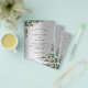 Por favor, note que este convite está no papel de folheto e é muito fino. Os envelopes não estão incluídos. Para convites mais espessos (mesmo design) visite nossa loja. Fundo de aspecto fino prateado decorado com verde de eucalipto, folhagem de ouro e brilho verde e prata, faíscas. Personalize e adicione seus nomes e detalhes do casamento. Letras negras.