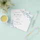 Por favor, note que este convite está no papel de folheto e é muito fino. Os envelopes não estão incluídos. Para convites mais espessos (mesmo design) visite nossa loja. Um fundo branco, decorado com caules de eucalipto azuis empoeirados, galhos. Personalize e seus nomes e detalhes. Fundo: fundo azul empoeirado.