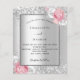 Por favor, note que este convite está no papel de folheto e é muito fino. Os envelopes não estão incluídos. Para convites mais espessos (mesmo design) visite nossa loja. Fundo de aspecto fino prateado decorado com flores brancas e cor-de-rosa, flores e brilho fino prateado, brilhos. Personalize e adicione seus nomes e detalhes do casamento. Letras negras.