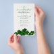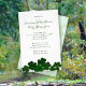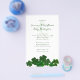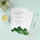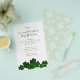 Muito barato, tema irlandês, convites de casamento. Impresso no folheto branco com texto verde escuro, este belo modelo de convite salvará um pacote. Borda verde de trevo ao longo do fundo e padrão de trevo no fundo. Inclua as informações de recepção e RSVP para concluir este convite de casamento de orçamento. Os nomes do casal estão em uma fonte moderna escrita à mão sobre um grande sinal "e". Esteja ciente de que a alteração do tamanho alterará o design.