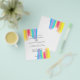 Belo convite de casamento do arco-íris com bonito e artístico traços de tinta cheio de cor brilhante. Estes convites coloridos são perfeitos para um casal artístico ou um casamento de gay e lésbicas. A carta alegre tem um lado de trás correspondente.
