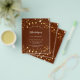 Por favor, note que este convite está no papel de folheto e é muito fino. Os envelopes não estão incluídos. Para convites mais espessos (mesmo design) visite nossa loja. Um fundo castanho decorado com estrelas ouros. Personalize e adicione um nome e detalhes da parte. O nome é escrito com um script de estilo manuscrito, letras brancas coloridas.