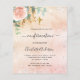 Por favor, note que este convite está no papel de folheto e é muito fino. Os envelopes não estão incluídos. Para convites mais espessos (mesmo design) visite nossa loja. Um fundo de rosa de ouro e gradiente cor-de-rosa pincelado decorado com verde de eucalipto, um rosa de cor-de-ouro e rosa-pincel, folhas de ouro e falsas gotas de relva prateada. Personalize e o nome das garotas e os detalhes da cerimônia.