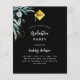 Por favor, note que este convite está no papel de folheto e é muito fino. Os envelopes não estão incluídos. Para convites mais espessos (mesmo design) visite nossa loja. Um fundo preto clássico, decorado com verde. A cor azul é irregular. Um ouro com o ano de graduação. Personalize e adicione um nome e detalhes da parte.