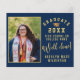 Folheto de Convite para Graduação de Foto do Script 4 de Leitura Azul-Dourada Glitter em Branco. Felicita o formando pelo seu bem merecido sucesso e celebra-o com este belo e amigável folheto orçamental. Observe que ENVELOPES NÃO ESTÃO incluídos. Esta é uma versão fina, de valor Matte paper flyer. Visite nossa loja para fazer o upgrade de um papel mais espesso e para muitas outras opções bonitas de cartão. Todos os textos estão pré-organizados para que você personalize fácil e rapidamente com seus próprios detalhes.