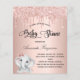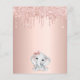 Por favor, note que este convite está no papel de folheto e é muito fino. Os envelopes não estão incluídos. Para convites mais espessos (mesmo design) visite nossa loja. Para um chá de fraldas, comemorando uma menina. Um fundo de aparência metálica falsa rosa dourado. Decorado com rosa dourado, brilho rosado, pintura gotejante, e uma linda menina elefante. Personalize e adicione o nome da futura mãe e os detalhes da festa. O nome e o texto: Chá de fraldas são escritos com um script de estilo manuscrito