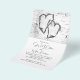 Convites de casamento orçados com design de latido de de pássaro branco. Impresso em papel folheto de barato, o convite vem em três tamanhos. Dois corações são entalhados na madeira no topo com texto embaixo. Os nomes estão no script e outro texto é impresso a preto.