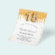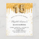 Por favor, note que este convite está no papel de folheto e é muito fino. Os envelopes não estão incluídos. Para convites mais espessos (mesmo design) visite nossa loja. Para uma elegante Quinceañera, 15 festa de aniversário. Um fundo branco chic. Decorado com pingos sujos de ouro, pintura pingando aparência. Personalize e adicione um nome, idade e detalhes da festa. O nome é escrito com um script de estilo manuscrito. Número 15 com letra de estilo de balão.