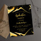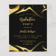 Por favor, note que este convite está no papel de folheto e é muito fino. Os envelopes não estão incluídos. Para convites mais espessos (mesmo design) visite nossa loja. Um convite moderno para uma festa de formatura para ele e para ela. Um fundo preto decorado com restos de ouro falsos. Personalize e adicione um nome e detalhes da parte. O texto Graduação e o nome são escritos com um script de estilo moderno, escrito à mão. Texto colorido do ouro.