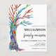 Por favor, note que este convite está em um papel de panfleto leve. Perfeito por economizar dinheiro no seu pedido. Os envelopes não estão incluídos. Para convites mais grossos do mesmo design, visite nossa loja. Este design exclusivo apresenta uma árvore genealógica colorida. Facilmente personalizável. Para editar ainda mais, use a ferramenta design para alterar a fonte, o tamanho da fonte ou a cor. Mosaico original © Michele Davies.