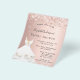 Por favor, note que este convite está no papel de folheto e é muito fino. Os envelopes não estão incluídos. Para convites mais espessos (mesmo design) visite nossa loja. Um convite moderno, na moda e glamouroso para um Chá de panela. Um fundo rosa dourado, gradiente de cinza com brilho sujo, faíscas e um vestido branco. O nome é escrito com um moderno estilo escrito à mão. Personalize e adicione os detalhes da sua festa.