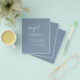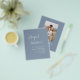Orçamento Personalize este convite para Na moda de Boho Simples Elegante Dusty Azul e Branco com sua mensagem e detalhes com uma foto elegante no verso. Este convite minimalista inclui a tipografia da escrita à mão na moda com uma cor moderna para a celebração especial do dia do casamento.