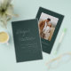 Orçamento Personalize este convite à Na moda de Emerald Verde e Sage Simples de Boho com sua mensagem e detalhes com uma foto elegante no verso. Este convite minimalista inclui a tipografia da escrita à mão na moda com uma cor moderna para a celebração especial do dia do casamento.