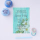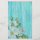 Convites de casamento bonito e econômicos impressos em papel de folheto. Design de madeira azul com rosas brancas e modelos de texto preto. O texto impresso é um estilo de fonte casual com três seções para personalizar. Economize dinheiro e inclua as informações de recepção e resposta. O inverso tem os mesmos rosas de praia em design de madeira. Sem envelopes.