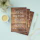 Casamento russo, convites amigáveis ao orçamento. O design do painel de madeira é impresso em papel folheto. Modelos de texto branco são um estilo de fonte manuscrito e quebrado. Os primeiros nomes do casal destacam-se com dois parágrafos para mais texto. O reverso também tem o aspecto da madeira.