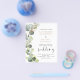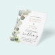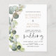 Convites de casamento de primavera com aquarela botânica de eucalipto econômico em fundo branco - inclui tipografia de roteiro bonita e elegante com folhas botânicas modernas e folhagens para a celebração do dia especial do casamento.