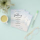 Convite de Casamento com Foto da Praia Preto e Branco Minimalista Elegante e Barato, apresentando um design simples e moderno com caligrafia caprichosa à mão, grandes espaços brancos e 2 fotos de fundo do paraíso tropical. Crie facilmente o design gráfico do seu convite de casamento dentro do orçamento.