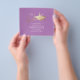 Moderno no Orçamento Simples Convites de Festa de formatura Minimalistas com Boné de Formando e roteiro de caligrafia na moda em folha metálica dourada. Pouco caro, mas na moda e chic, fundo roxo Lavanda, personalizável em qualquer cor.