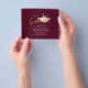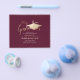 Moderno No Orçamento Simples Convites Minimalistas à Festa de formatura Apresentando Boné de Formando e roteiro de caligrafia na moda em papel vermelho-bravo-marsala e folha metálica de ouro. Pouco dispendioso, mas na moda e chic, plano de fundo sólido e preto limpo, personalizável em qualquer cor.