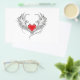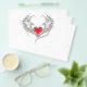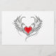 Coração vermelho pintado artificialmente com cinza de asas de anjo, decorado com contorno liso preto.