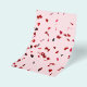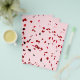Corações vermelhos e roxos voam no ar contra o fundo rosa. Saudações do Dia dos Valentes! A alegria e o amor estão no ar! Texto AMOR em alguns produtos. T-shirts, impressões e presentes para diversão e bom humor e para celebrar Ruas. Dia de os namorados