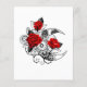 Contorno, lua da crista mecânica com engrenagens, decorada com rosas vermelhas com caules e folhas pretas em fundo branco. Steampunk