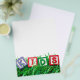 Blocos alfabéticos que formam KIDS num pedaço de grama