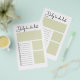 Stay organized and focused with this modern Sage Green Daily To-Do List! This minimalist design features a clean checklist and dedicated spaces for notes and priorities. Perfect for home, office, or school use to keep your tasks on track. Simple, elegant, and highly functional for everyday productivity. Order your personalized notepad today!