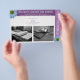 Crie seus próprios folhetos de publicidade e marketing direto com 2 fotos para mostrar sua marca com este design de margarida de negócios assimétrico, roxo e lavanda. O layout assimétrico está em tendência com o design gráfico moderno e esses folhetos de flores de margarida dupla fornecem impacto visual excelente com borda dupla em roxo escuro e uma cor de lavanda mais leve. O texto branco nas bordas em fontes mistas carrega um soco enquanto o espaço branco deixa suas fotografias brilharem. Este modelo de folheto de marketing com margaridas brancas e amarelas no canto superior esquerdo e inferior direito é fácil de personalizar com 2 fotos e seu texto personalizado. Quatro modelos de texto na frente e texto adicional, mas opcional, no verso dão-lhe ampla margem para contar a sua história. Os folhetos publicitários comerciais são perfeitos para promoções internas, marketing de publicidade direta e como doações. O design de artes gráficas criativas em duas tonalidades de roxo e as bonito margaridas brancas mostrarão suas fotos personalizadas destacando seus serviços ou produtos enquanto atrai seus clientes com seu impacto visual. De salões de beleza a estilistas, empresas de jardins à loja em geral, esses folhetos de negócios de colagem de fotos do tema botânico irão elevá-lo acima da competição.