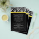 Na moda, fundo preto e branco moderno, limpo e nítido, de cor damasco, com faixa de destaque de amarelo ensolarado vibrante. Um toque adorável para uma festa de verão ou evento de casamento. Design alegre e fresco. Este design está disponível como um conjunto de correspondência completo!
