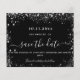 Observe que esta opção Save the date (Salvar a data) está no papel do folheto e muito fina. Os envelopes não estão incluídos. Para salvar o cartão Data (mesmo design) mais espesso, visite nossa loja. Um moderno e elegante Salve a Data para um casamento. Um fundo preto decorado com falso brilho prateado. Personalize e adicione uma data e nomes. O texto: Salvar a Data é gravado com um script de estilo com letra de tendência grande.