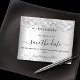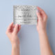 Observe que esta opção Save the date (Salvar a data) está no papel do folheto e muito fina. Os envelopes não estão incluídos. Para Cartões salve a data mais espessos (mesmo design) visite nossa loja. Um moderno e elegante Salve a Data para um casamento. Um fundo prateado falso decorado com brilho falso. Personalize e adicione uma data e nomes. O texto: Salvar a Data é gravado com um script de estilo com letra de tendência grande.