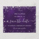 Por favor, note que esta data está no papel folheto e muito fina. Os envelopes não estão incluídos. Para placas mais grossas (mesmo design) visite nossa loja. Um glamouroso Salvar a data para uma festa de aniversário 50th (ou qualquer idade). Um fundo púrpura incolor. Decorado com pó falso de cinza prateada. O texto: Salvar a Data é gravado com um script de estilo com letra de tendência grande.