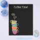 Flyer de menu de loja de chá ou café. Xícaras de chá/canecas de café de porcelana colorida. Texto personalizável e espaço livre.