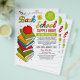 Promova suas costas para a unidade de distribuição escolar e rifa com esta ilustração de livros coloridos minimalista empilhados com maçã vermelha, lápis, avião voador, estrelas, nota de posto, fundo de papel e tipografia colorida. Personalize o modelo para seu gosto.