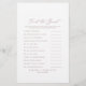 Este delicado ouro de rosa Encontrar o jogo de recepção de casamento Convidado é perfeito para uma recepção de casamento moderna. A design romântica minimalista apresenta uma magnífica e elegante tipografia cor-de-rosa rosa, empoeirada, num fundo branco, com um aspecto simples e limpo. Personalize o cartão com os nomes da noiva e do noivo e a data do casamento. Você pode personalizar as perguntas do jogo clicando no botão "personalizar".