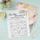 O Panfleto de Descubra o Bingo da Noiva Floral da Convidada apresenta uma borda floral de canto em aquarela, fundo abstrato em aquarela no verso e um modelo de pergunta de bingo de noiva engraçado. Por favor, clique no botão personalizar para personalizá-lo com seu texto e perguntas. Visite minha loja "loveyouart" para outros designs ou similares.