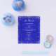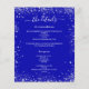 Por favor, note que este programa está no papel folheto e muito fino. Os envelopes não estão incluídos. Para programas mais espessos (mesmo design) visite nossa loja. Um programa de casamento moderno e elegante/detalhes/cronologia. Um fundo azul real, decorado com faíscas de brilho prateado. Personalize e adicione seus nomes e detalhes do casamento. Letras brancas coloridas. Texto de ambos os lados. Adicione o URL do seu site de casamento ao código QR.