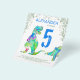Um T-Rex colorido e um estegossauro fofo convidam os fãs do Dinossauro para uma festa de aniversário 5 para amantes de dino. Personalize este Tyrannosaurus psicodélico e um convite para estegossauros fofos adicionando o nome do aniversariante ou menina, o número do aniversário e os detalhes da festa e você está preparado para um divertido e cheio de dinossauros, selva verde-azul, o chamado aniversário dos dinos. Todas as espécies de dinossauros são bem-vindas. Idade jurássica pré-histórica Ilustrações do dinossauro, obra de arte original de Catherine Sweetman