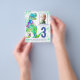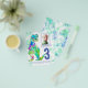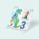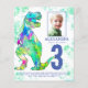 Para o garoto que está fazendo três anos e que ama dinossauros pré-históricos. Este Rex de Raios convida os fãs de Dino para uma festa divertida de aniversário de 3 anos. Personalize este convite de três anos, azul e verde, colorido, com uma foto do aniversariante ou menina, o número de anos e os detalhes da festa, e você está preparado para um divertido e cheio de dinossauros no seu aniversário dino. Todas as espécies de dinossauros são bem-vindas. Arte original única e bela da artista Catherine Sweetman
