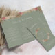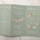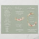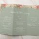 Este folheto triplo é designado para a longa cerimônia, ele apresenta uma coroa floral pintada manualmente com aquarelas para um casamento com temas boho. texto é facilmente editável clicando no botão personalizar.