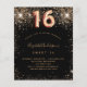 Por favor, note que este convite está no papel de folheto e é muito fino. Os envelopes não estão incluídos. Para convites mais espessos (mesmo design) visite nossa loja. Um convite moderno, na moda e glamouroso para uma festa de aniversário Doce 16, 16. Um fundo preto decorado com falso brilho. O nome é escrito com um moderno ouro escrito com letras no estilo à mão. Personalize e adicione os detalhes da sua festa. O número 16 é escrito com uma fonte de estilo de balão, script.